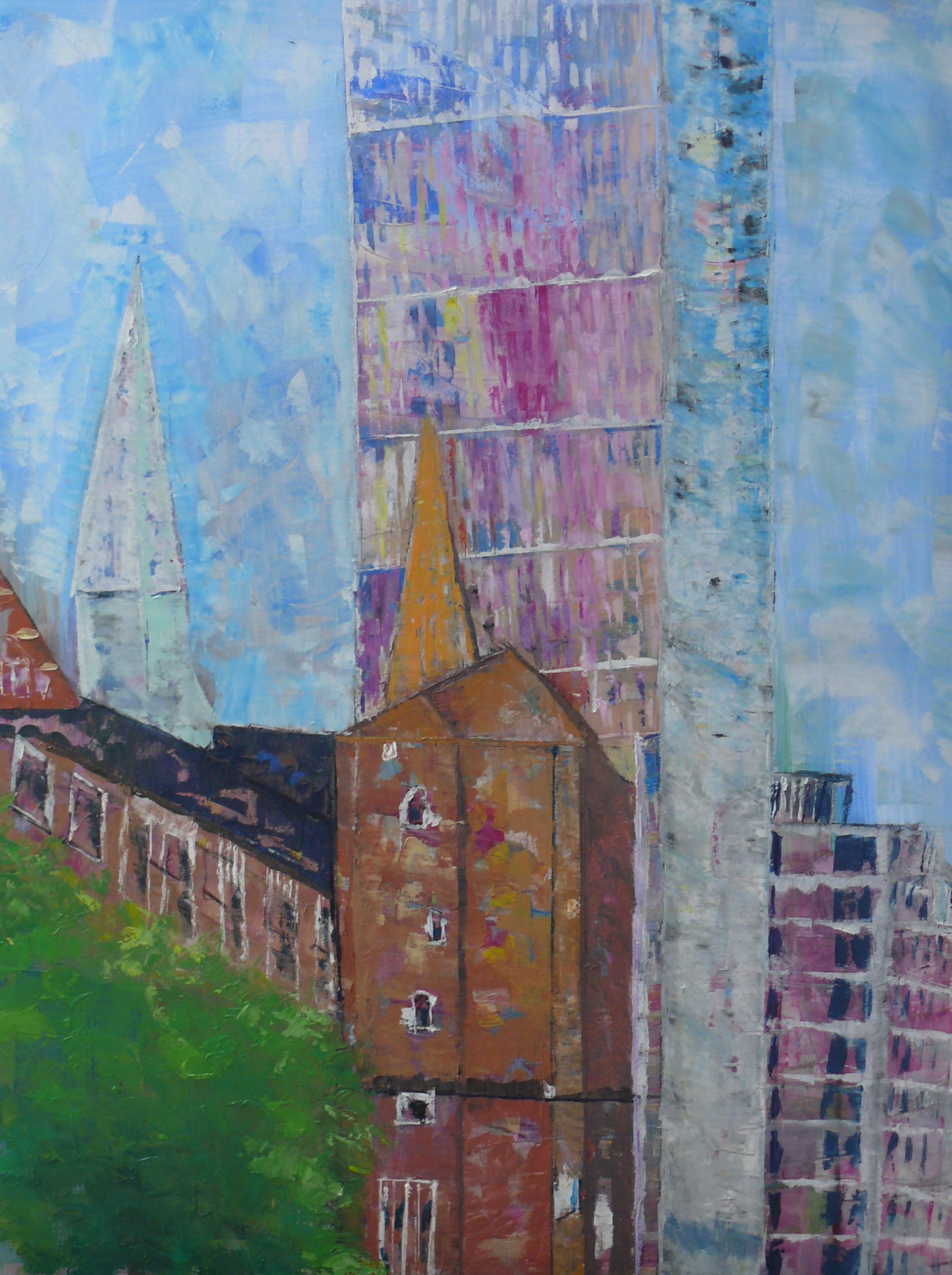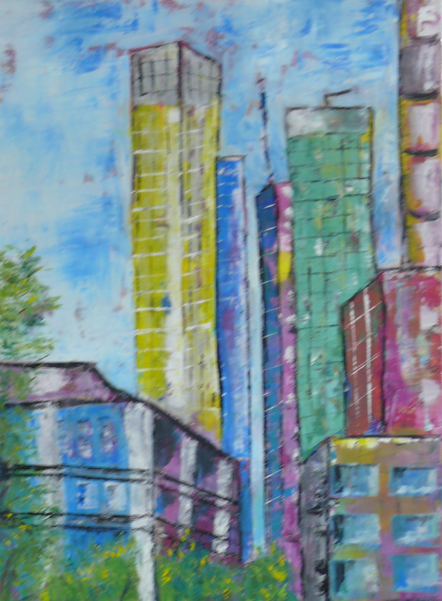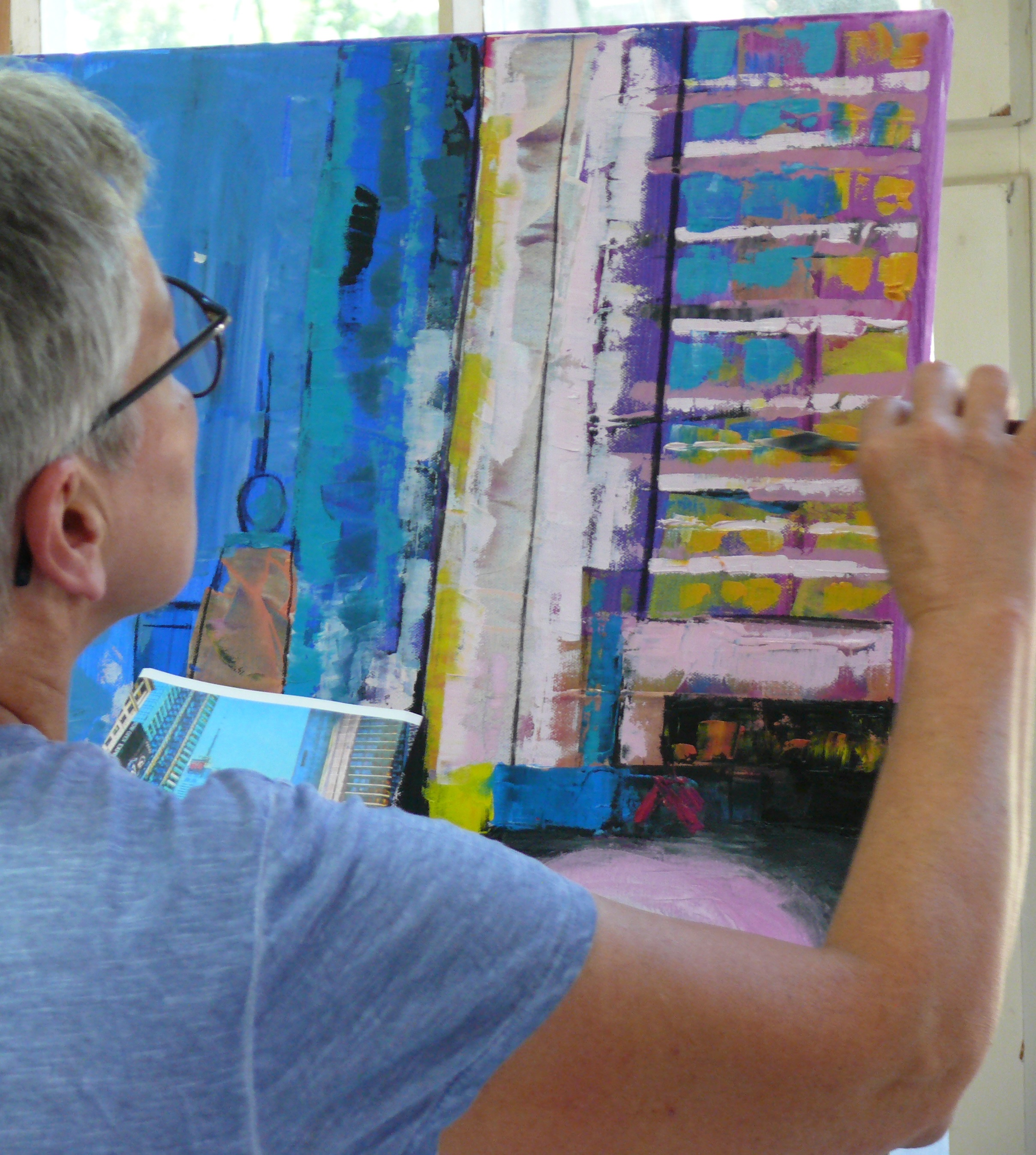 Die eigene Wahrnehmung, das eigene Erlebnis des Ortes soll in die Malerei mit einfließen. Gebäude und Gegenstände werden nicht kopiert sondern neu zusammengesetzt. Die Fotos dienen uns lediglich als Vorlage für weitere Abstraktionen.