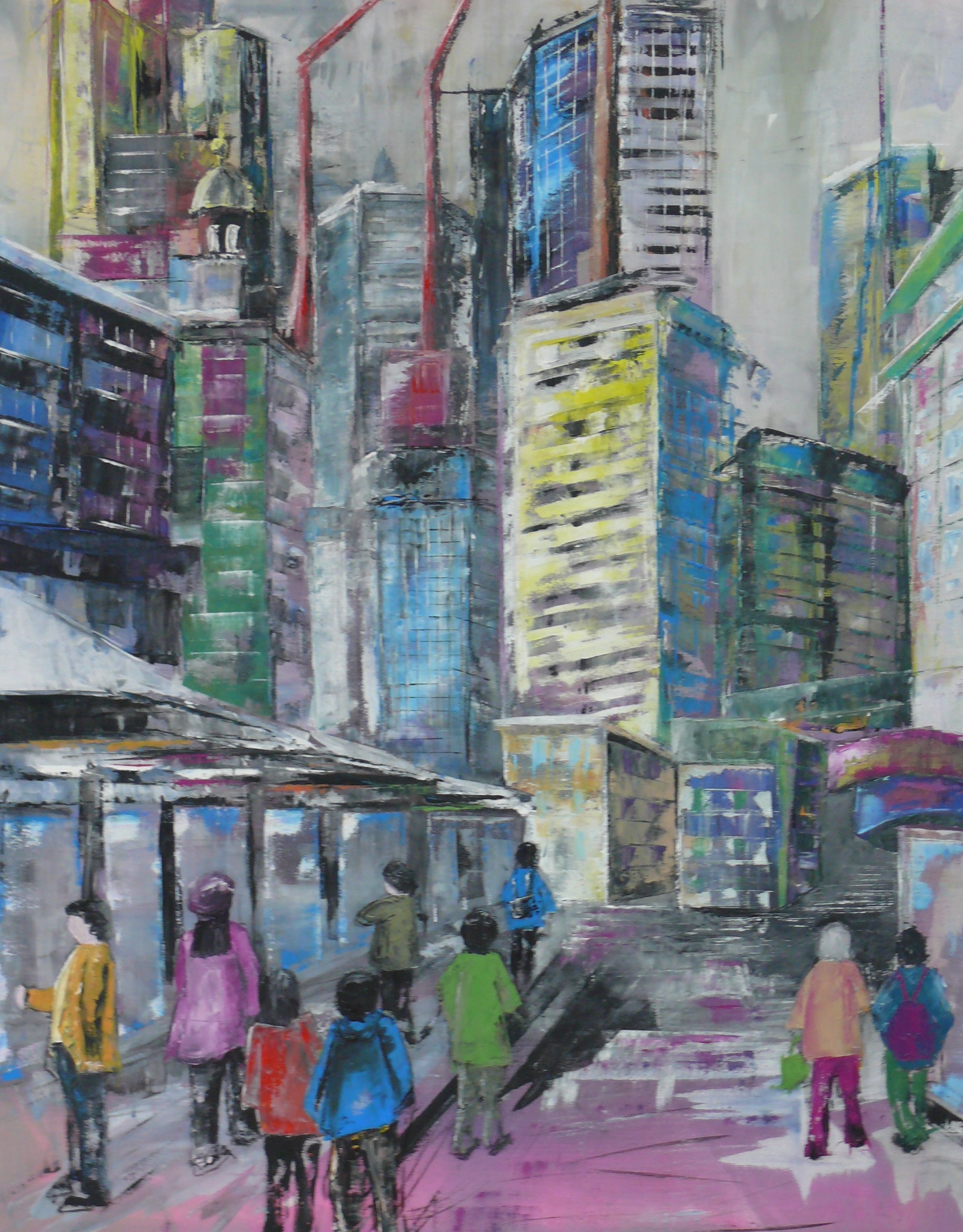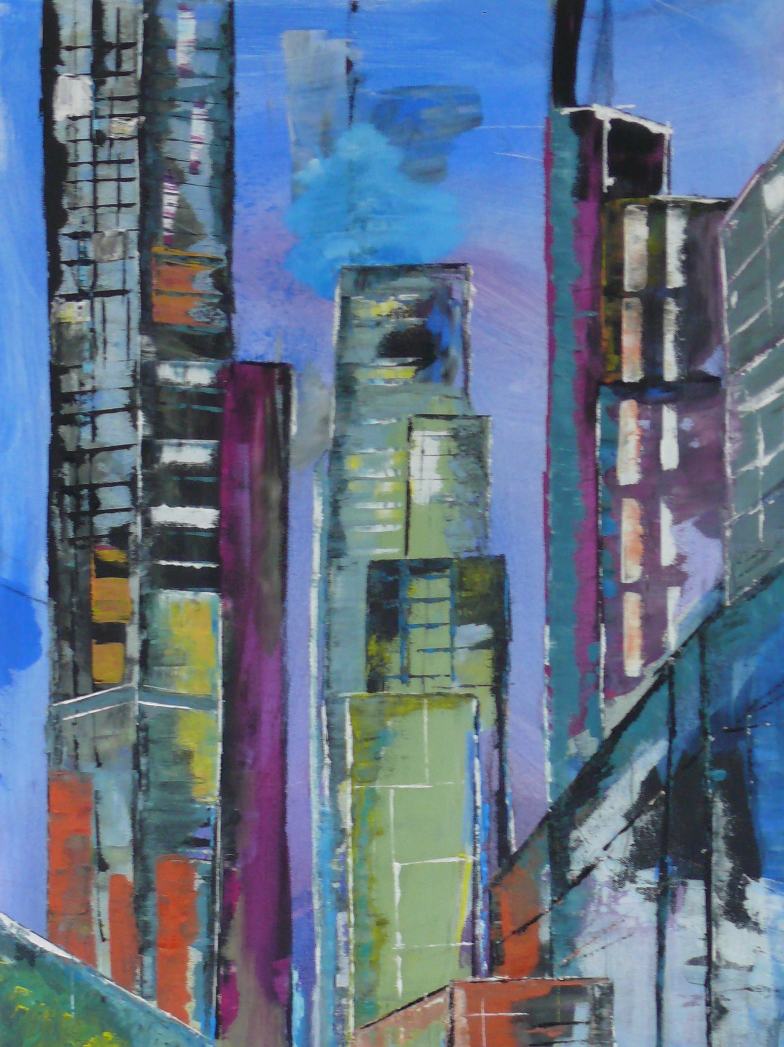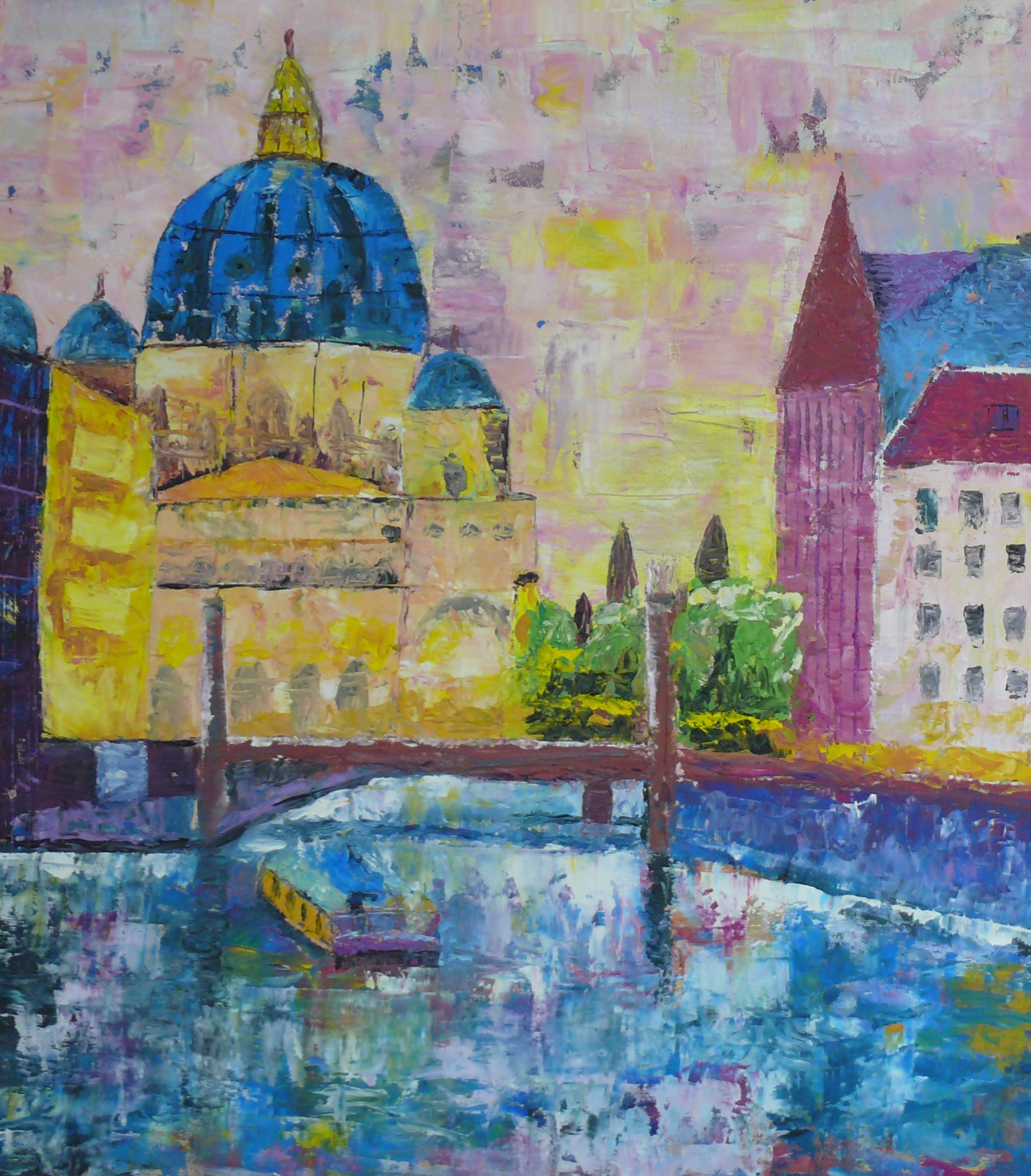 Die eigene Wahrnehmung, das eigene Erlebnis des Ortes soll in die Malerei mit einfließen. Gebäude und Gegenstände werden nicht kopiert sondern neu zusammengesetzt. Die Fotos dienen uns lediglich als Vorlage für weitere Abstraktionen.