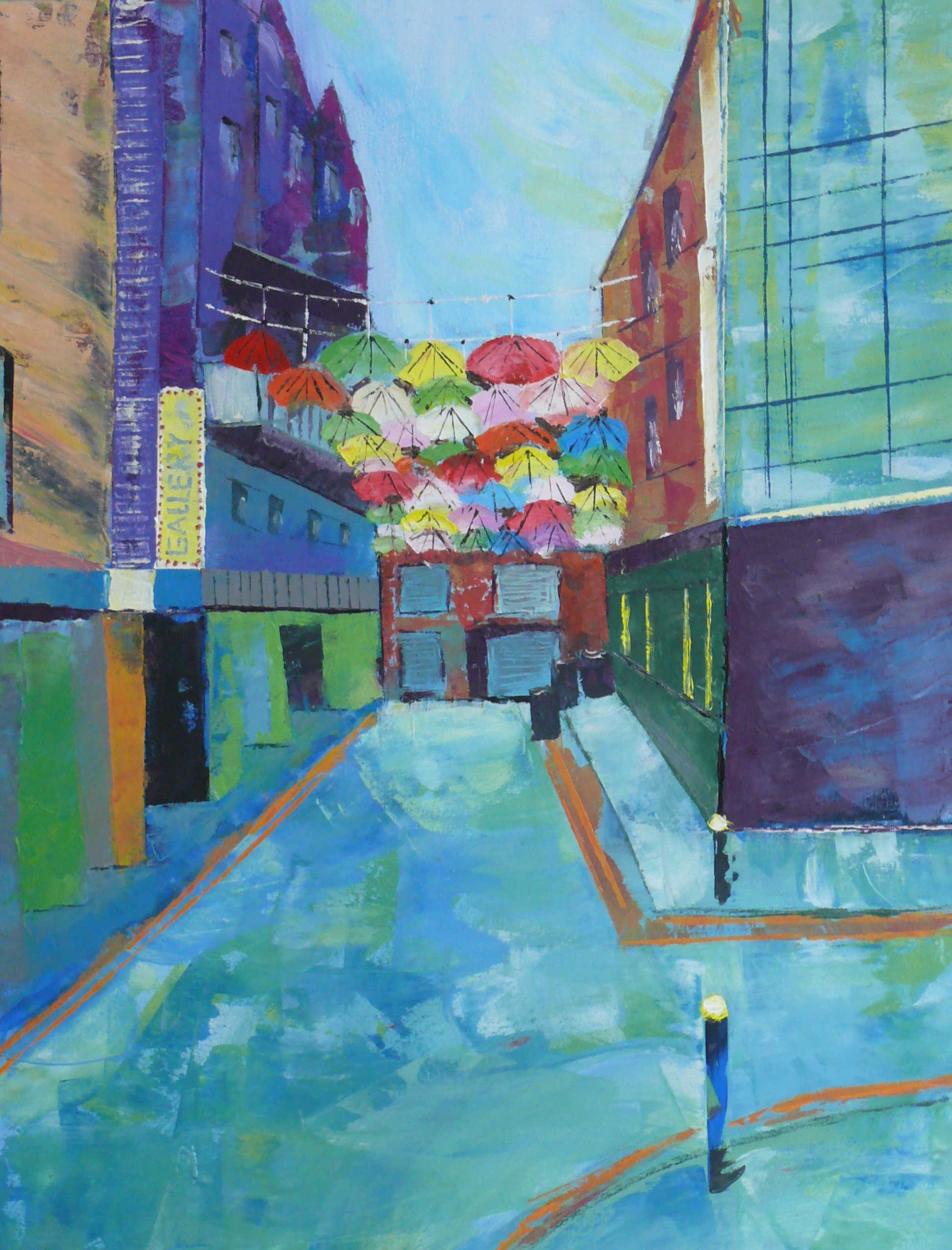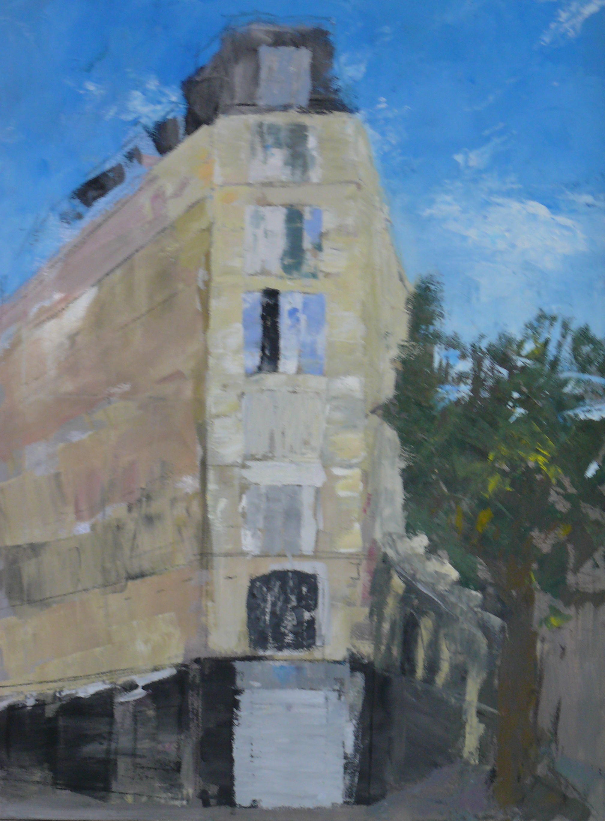 Die eigene Wahrnehmung, das eigene Erlebnis des Ortes soll in die Malerei mit einfließen. Gebäude und Gegenstände werden nicht kopiert sondern neu zusammengesetzt. Die Fotos dienen uns lediglich als Vorlage für weitere Abstraktionen.